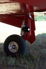 The front wheel is integrated with a high efficient oleo-pneumatic shock absorber. The steering and the braking system are unchanged. When the landing gear is down the torque-arms are mechanically blocked, preventing the rotation unless driven by the actuators. An electrical compressor gives the necessary pressure to the pneumatic system headed up by two spherical tanks. One tanks gives the necessary compressed air in case of system failure. In any case the gravity assures the landing gear extension. The panel indicators (up-and-locked, down-and-locked) comply with FAR requirements.